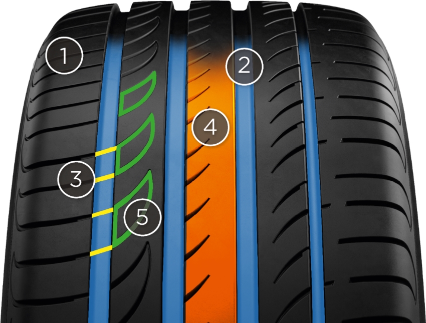 - ПОЛИМЕРНЫЙ СОСТАВ РЕЗИНОВОЙ СМЕСИ - Улучшенные характеристики на мокрой и сухой дороге, повышенная износоустойчивость.